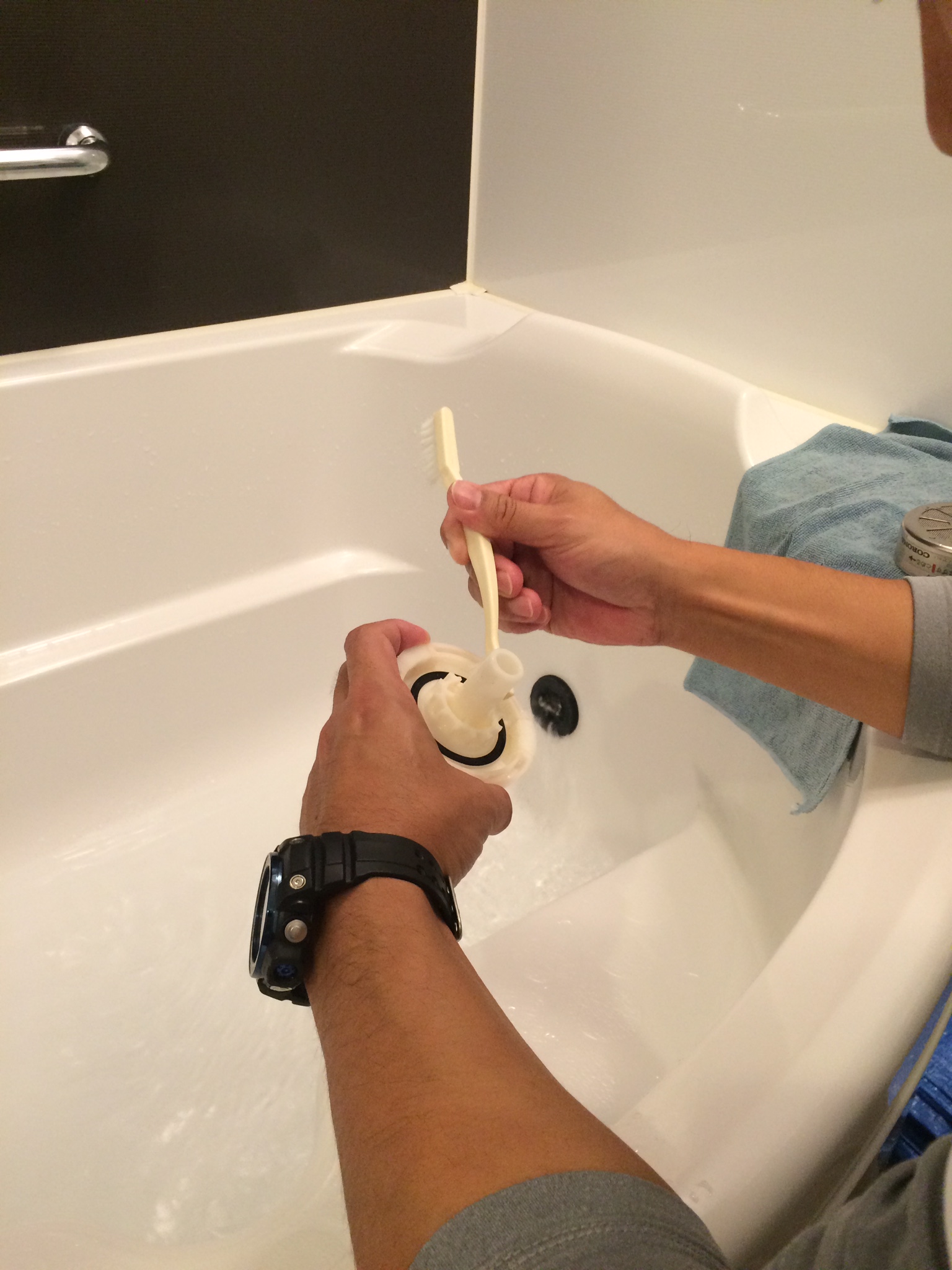 最後にバスタブを磨き上げて終了です。すぐにご入浴頂けるようにして、お引き渡しです。